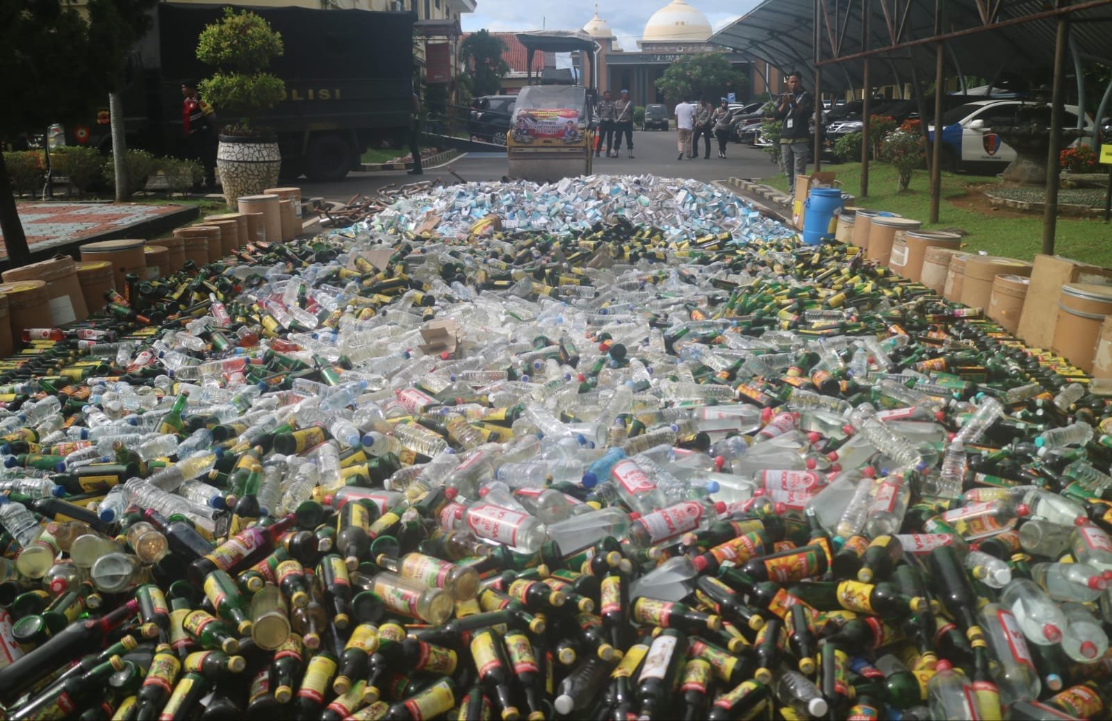 Subang–Polres Subang memusnahkan 10.168 botol minuman keras berbagai merek. Ribuan botol tersebut merupakan hasil operasi cipta kondisi selama Agustus- Desember 2024.