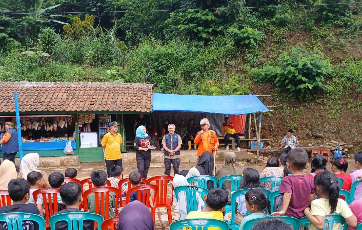 Kegiatan pemulihan psikologis ini dipusatkan di Posko Terpadu Penanganan Bencana Desa Mayang di Cibagi, pada Minggu (07/12/25).