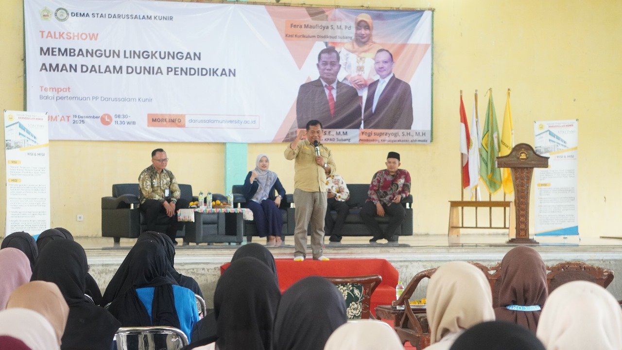 Subang — Dewan Eksekutif Mahasiswa (DEMA) STAI Darussalam Kunir kembali menunjukkan komitmen nyatanya terhadap isu strategis di dunia pendidikan melalui penyelenggaraan talkshow akademik bertajuk “Membangun Lingkungan Aman dalam Dunia Pendidikan”.