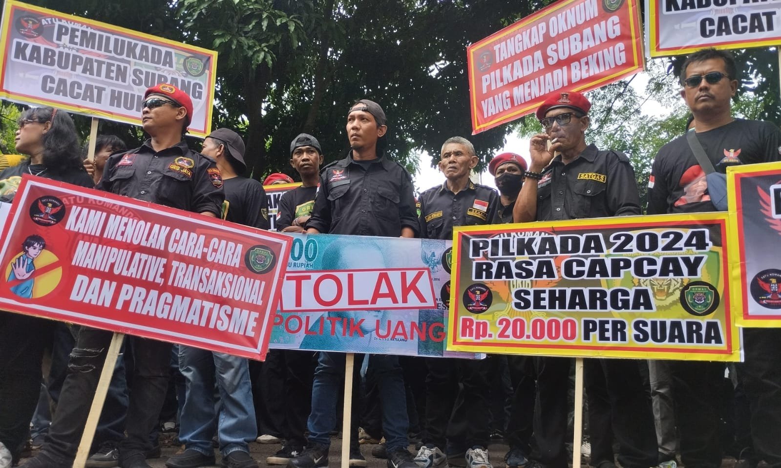 “Kami prihatin terkait Pilkada di Kabupaten Subang yang telah dicederai secara demokrasi, adanya politik uang yang secara terstruktur, sistematis dan masif, yang tersebar di beberapa penjuru kecamatan di Kabupaten Subang,” ucap Yoga, usai demo di Bawaslu Subang, Kamis (05/12/24).