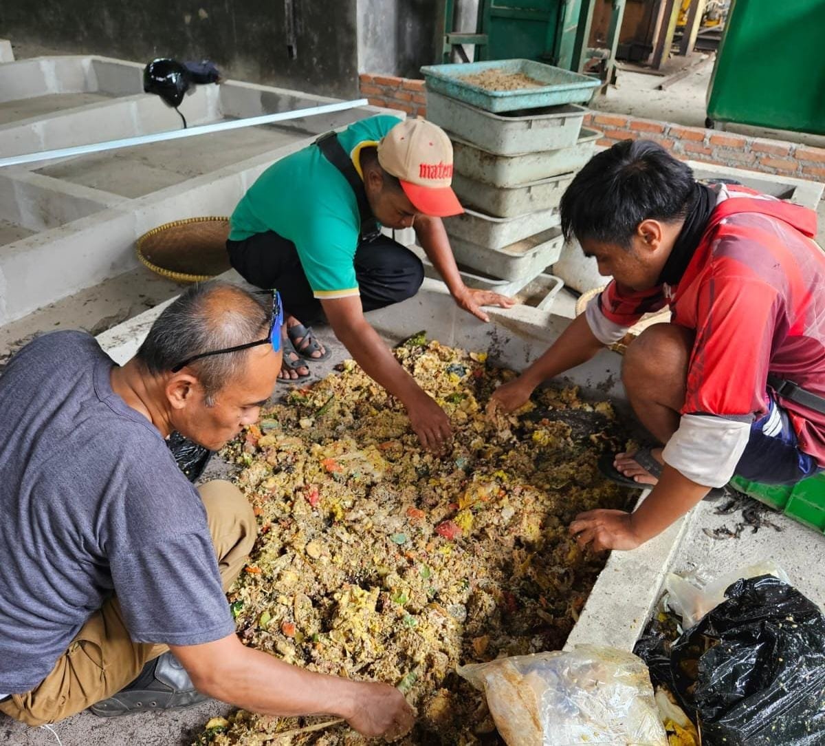 Sampah organik tersebut nantinya akan difermentasi sebelum diolah menjadi pakan maggot. Proses ini tidak hanya membantu pengelolaan limbah, tetapi juga menghasilkan manfaat tambahan berupa kompos alami di masing-masing wilayah.