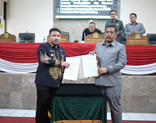 Keduanya secara resmi menyepakati Rancangan Peraturan Daerah (Raperda) Perubahan Kelima atas Perda Nomor 7 Tahun 2016 tentang Pembentukan dan Susunan Perangkat Daerah.