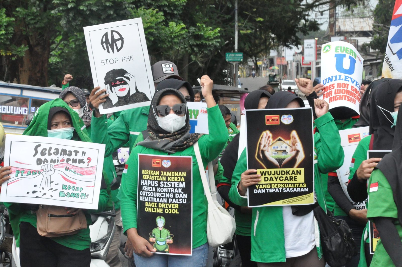 Sambil membawa spanduk dan poster yang berisi tuntutan peningkatan kesejahteraan dan penolakan terhadap sistem kerja kontrak dan outsourcing, mereka meminta Pemerintah segera menyelesaikan Raperda Ketenagakerjaan.