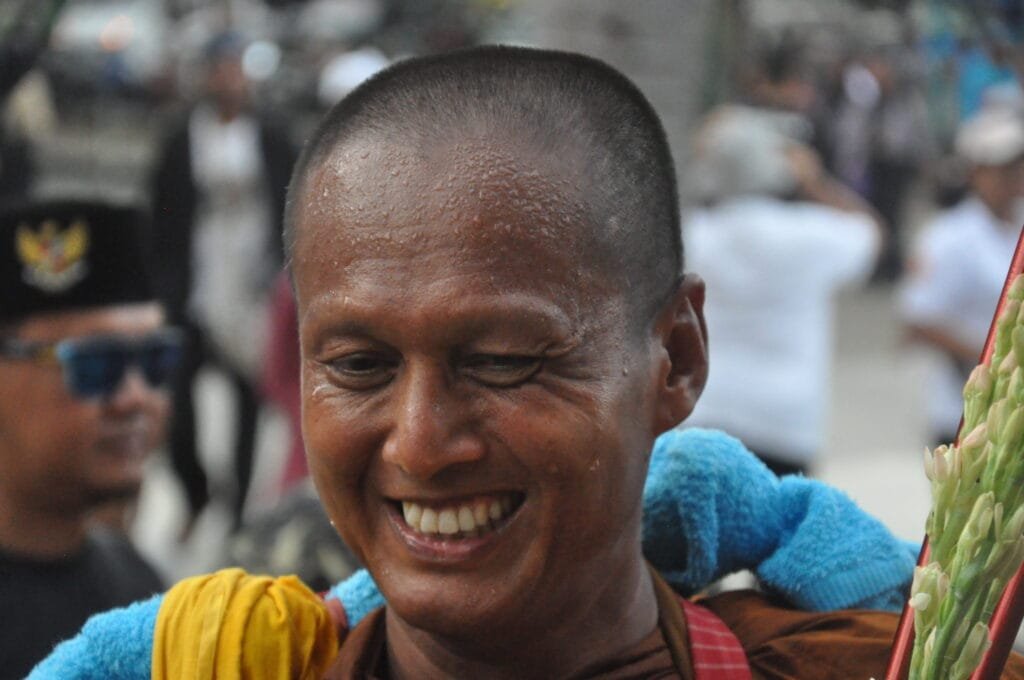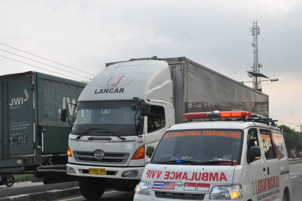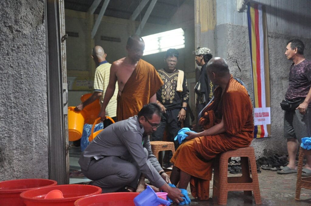 Mobil Ambulance milik Laskar Macan Ali saat mengiringi rombongan Thudong di jalur Pantura Pamanukan, Rabu (23/04/25). Foto: C. M. Yusup/Cluetoday.Dua anggota Banser dari GP Ansor Subang, mengendarai sepeda motor mengiringi rombongan Thudong, Rabu (23/04/25). Foto: C. M. Yusup/Cluetoday.Derap langkah rombongan Thudong yang berasal dari berbagai negara saat jalan kaki melewati jalan Pantura Pamanukan, Rabu (23/04/25). Foto: C. M. Yusup/Cluetoday.Anggota Polsek Pamanukan melakukan pengawalan pada para Bhante anggota rombongan Thudong, Rabu (23/04/25). Foto: C. M. Yusup/Cluetoday.Sejumlah anak melihat Bhante yang sedang diwawancarai jurnalis, Rabu (23/04/25). Foto: C. M. Yusup/Cluetoday.Seorang Bhante tersenyum dengan keringat bercucuran di wajahnya usai tiba di Pamanukan, Rabu (23/04/25). Foto: C. M. Yusup/Cluetoday.Rombongan Thudong disambut alunan musik dari tim Marching Band SMK Darul Maarif Pamanukan, Rabu (23/04/25). Foto: C. M. Yusup/Cluetoday.Perwakilan Bhante Thudong menyampaikan kesannya atas keramahan warga kala menyambut mereka di Pamanukan, Rabu (23/04/25). Foto: C. M. Yusup/Cluetoday.Berbagai kalangan menyambut rombongan Thudong di Pamanukan, Rabu (23/04/25). Foto: C. M. Yusup/Cluetoday.Umat Buddha melakukan ritual membasuh kaki seorang Bhante sebagai bentuk penghormatan yang sedang Thudong, Rabu (23/04/25). Foto: C. M. Yusup/Cluetoday.Bhante memegang ember dan gayung untuk digunakan bersih-bersih badan di GOR samping Vihara Sila Persada Pamanukan, Rabu (23/04/25). Foto: C. M. Yusup/Cluetoday.Pesan #SatuHariSatuKebajikan di spanduk Thudong 2025. Foto: C. M. Yusup/Cluetoday.