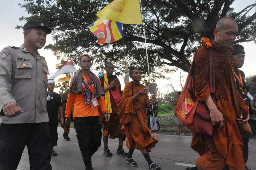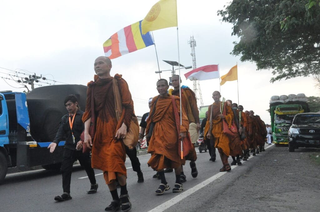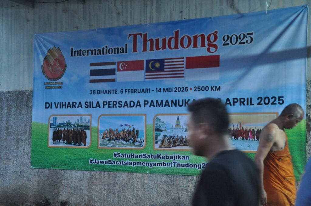 Subang–Rombongan 38 Bhante sedang melakukan ritual perjalanan Thudong dari Thailand menuju Candi Borobudur, Magelang, Jawa Tengah. Pemimpin spiritual umat Buddha ini, bakal menempuh perjalanan 2500 kilometer. Pada Rabu (23/04/25), mereka telah sampai di Pamanukan, Subang.