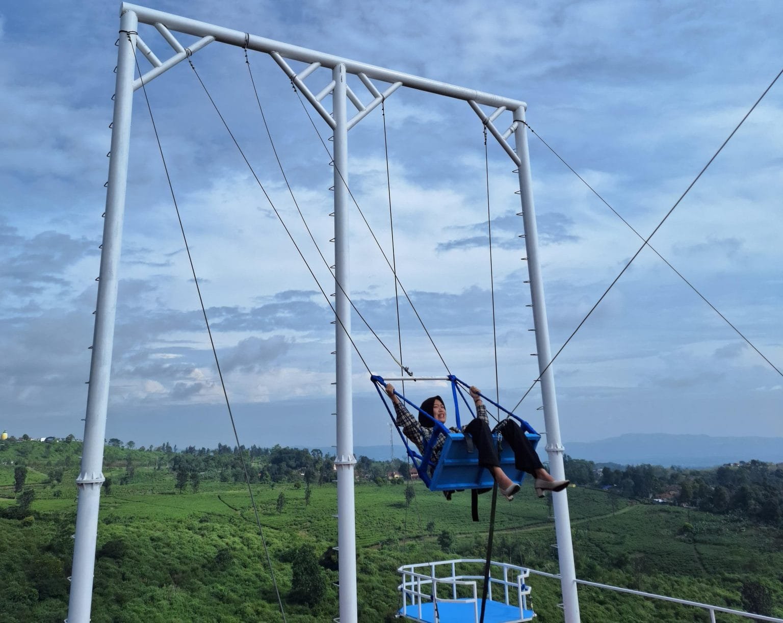 Selain merasakan sensasi melayang di udara, pengunjung dapat menikmati keindahan alam sekitar dari ketinggian 15 meter diatas ayunan. Terobosan baru ini menjamin keamanan pengunjung dengan pengamanan yang memadai.