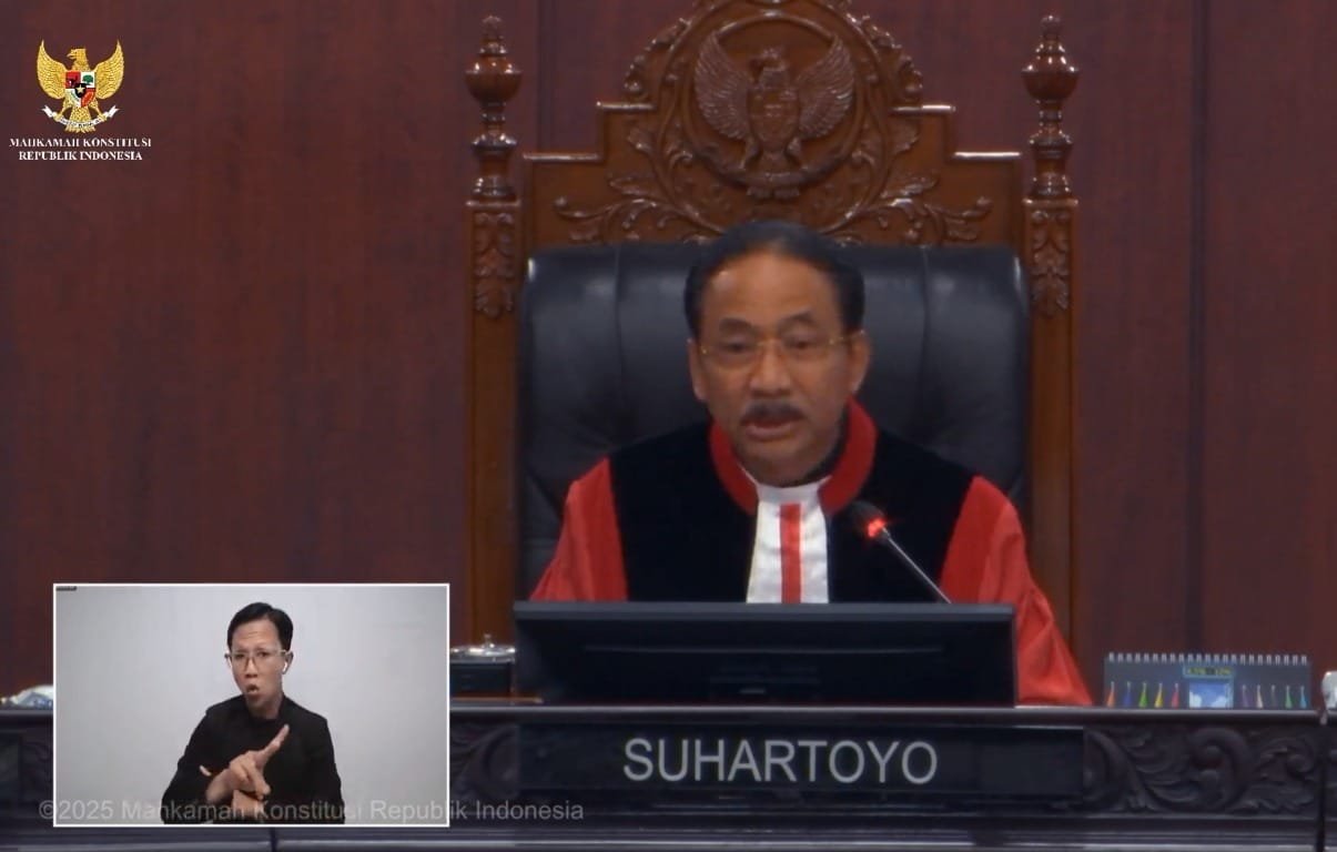Sidang digelar pada Selasa (04/02/25) di Gedung MK, Jakarta. Dalam sidang yang dipimpin Ketua MK, Suhartoyo, menolak seluruh dalil permohonan Jimat-Aku.