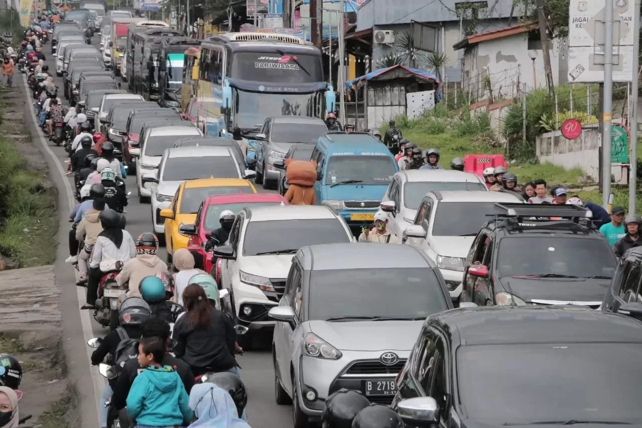 Bogor – Terpantau kepadatan arus lalu lintas terjadi karena libur panjang karena Isra Miraj dan Tahun Baru Imlek 2025. Arus lalu lintas menuju jalur Wisata Puncak Bogor tercatat mengalami peningkatan signifikan yaitu lebih dari 12.000. Kendaraan melintas setelah keliar daro Gerbang Tol Ciawi, Senin (27/1/2025).