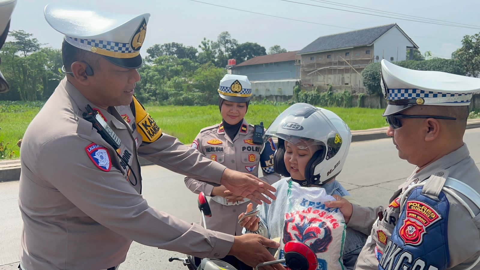 Dia melanjutkan, di momen Operasi Keselamatan Lodaya 2025, personel Sat Lantas Polres Subang membagikan 250 kilogram beras dan helm gratis pada pengendara yang melintas.