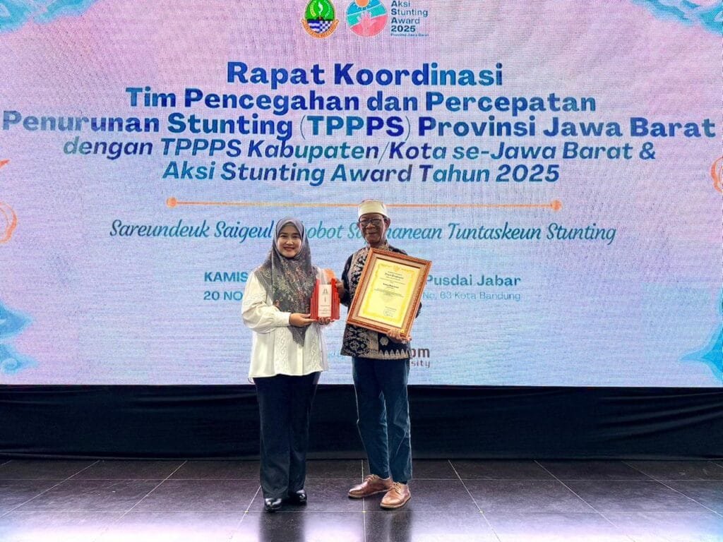 Penyerahan penghargaan tersebut oleh Wakil Gubernur Jawa Barat, Erwan Setiawan, kepada Wakil Wali Kota Cirebon, Siti Farida Rosmawati, dalam kegiatan Rakor TPPPS Provinsi Jawa Barat dan Aksi Stunting Award Tahun 2025 yang terselenggara di Bale Asri PUSDAI Jawa Barat, Kota Bandung, Kamis, 20 November 2025.