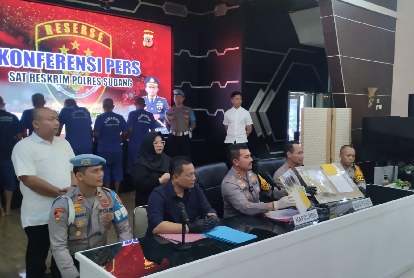 Menurut Kapolres Subang, AKBP Ariek Indra Sentanu, kelima tersangka menjalankan aksinya dengan melakukan pemerasan berbalut “Uang Bantuan Keamanan Lingkungan”.
