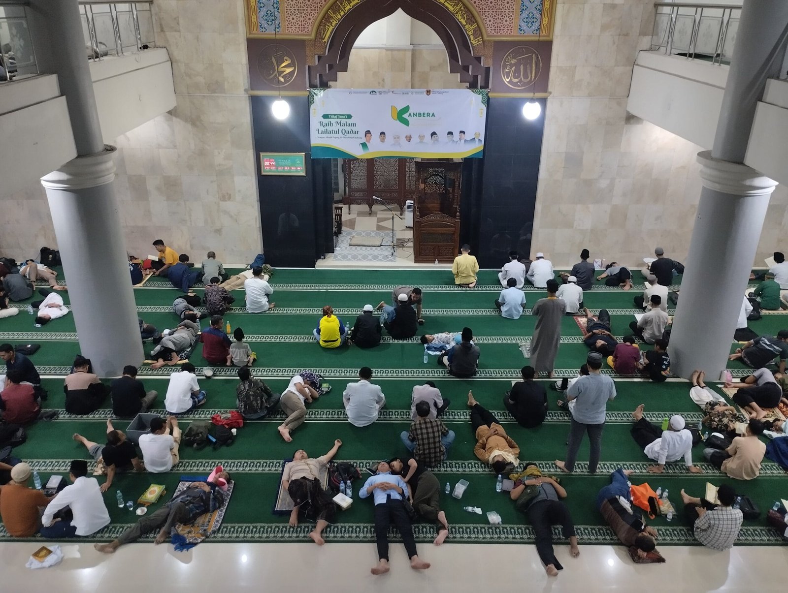 Pantauan Cluetoday, beragam kegiatan selama iktikaf yang dilakukan jemaah. Ada yang khusus membaca Al-Qur’an, sholat sunnah, ataupun tidur terlelap beralas sajadah.