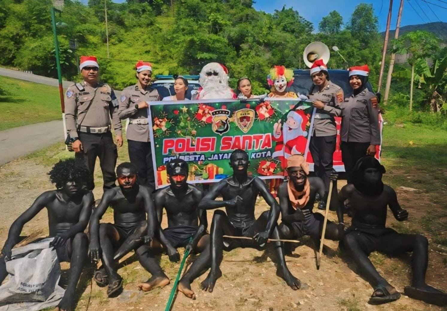 JAYAPURA – Dalam rangka menyambut Natal 2024, Satuan Lalu Lintas Polresta Jayapura memberikan kegembiraan kepada masyarakat Papua, khususnya warga Jayapura, dengan menghadirkan polisi Santa. Kegiatan ini melibatkan pemuda dari GKI Eklesia Kodam dan dilaksanakan pada Sabtu (7/12/2024) lalu.