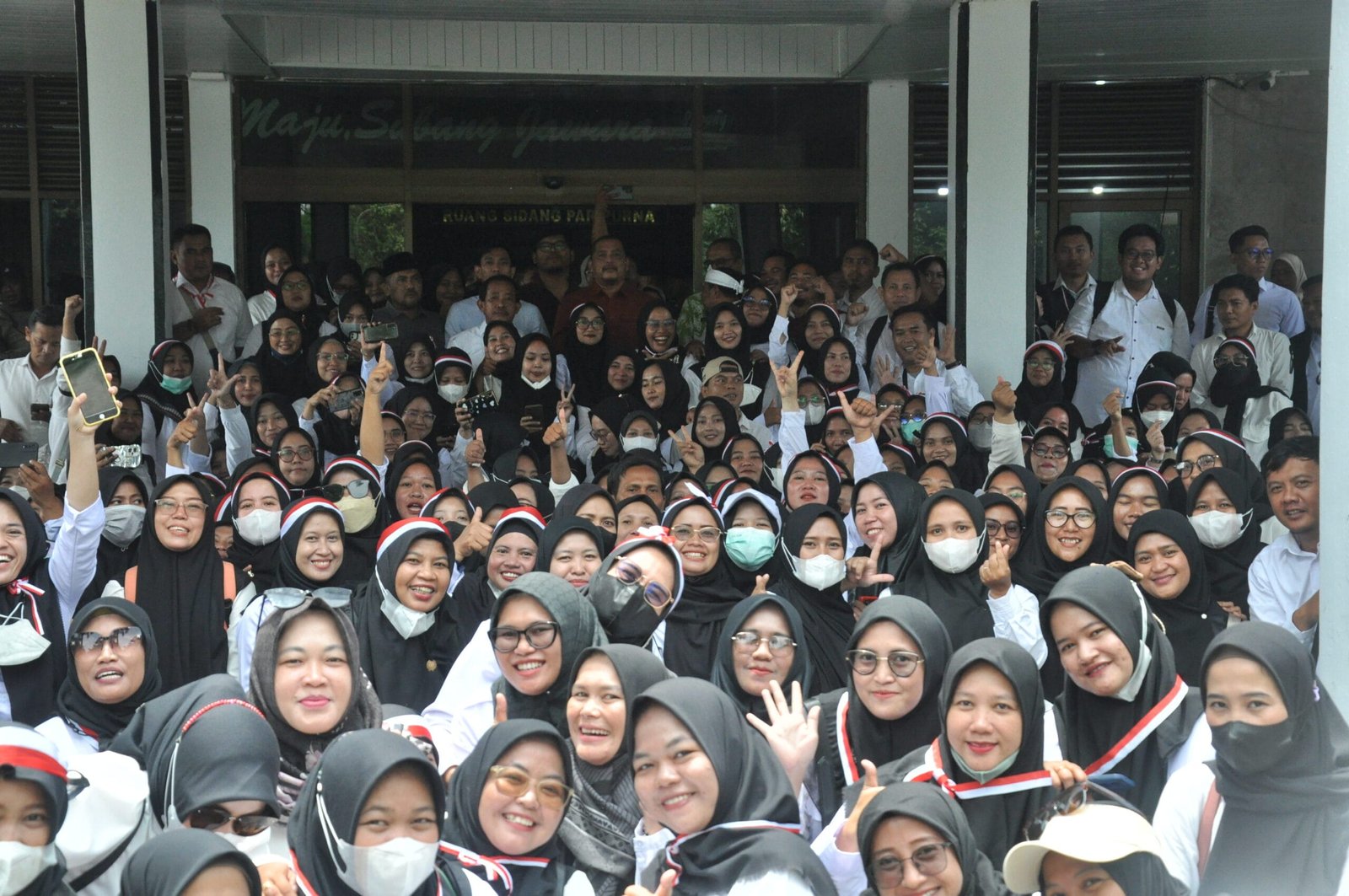 Para honorer Calon PPPK yang lolos seleksi, setelah aksi demo menolak penundaan pengangkatan PPPK ke DPRD Subang. Foto: Cep/Cluetiday.