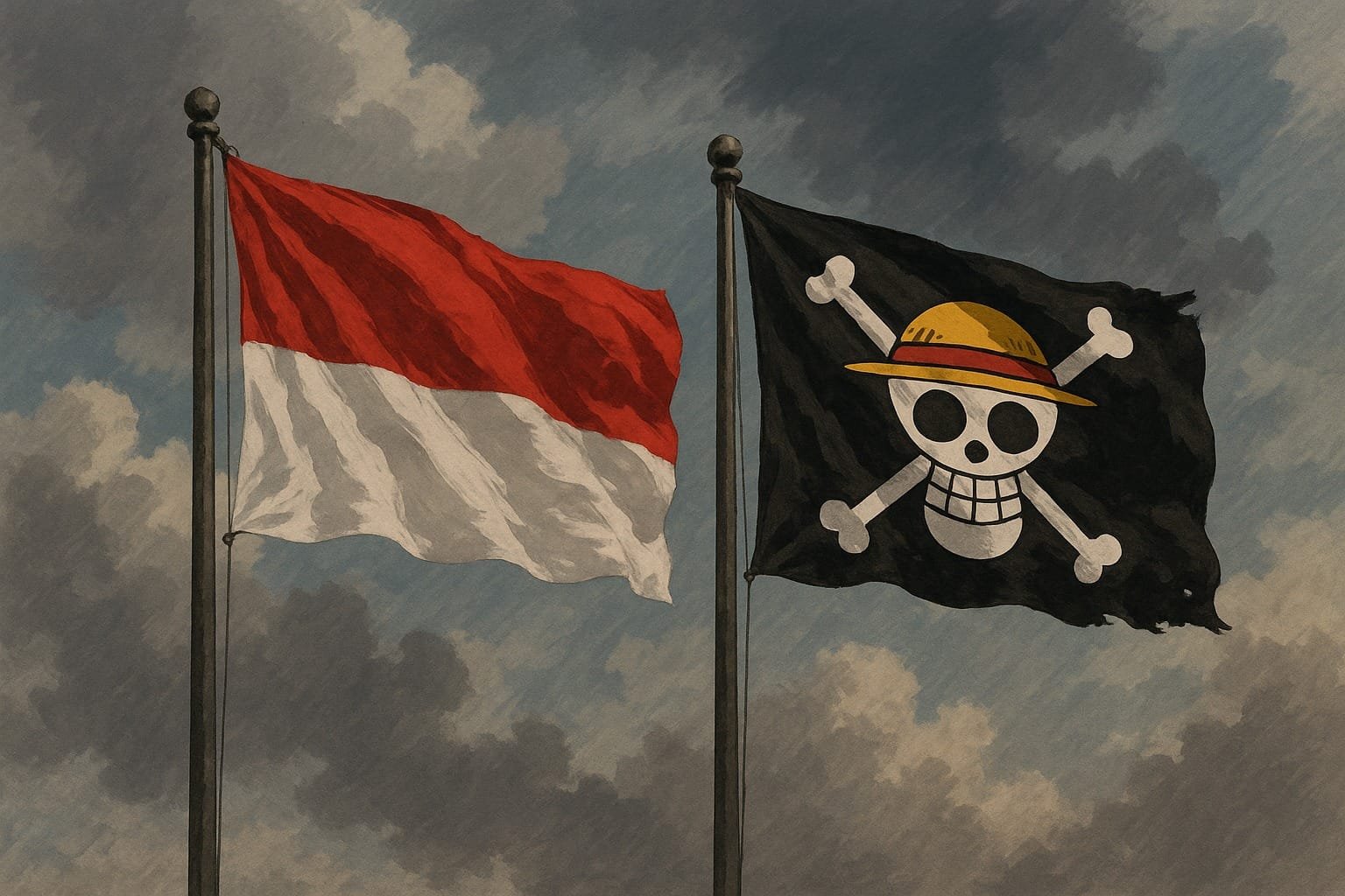 Namun ada yang berbeda dengan tahun ini. Alih-alih mengibarkan bendera kebangsaan, masyarakat justru menyerukan untuk mengibarkan bendera Jolly Roger. Yaitu bendera bajak laut yang ada dalam serial anime One Piece.