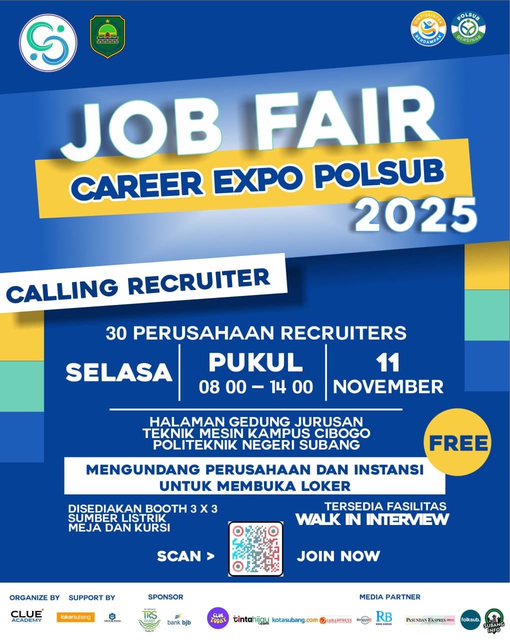 SUBANG – Politeknik Negeri Subang (Polsub) kembali mengadakan Job Fair Career Expo 2025 pada Selasa, 11 November 2025, di Halaman Gedung Teknik Mesin Polsub.
