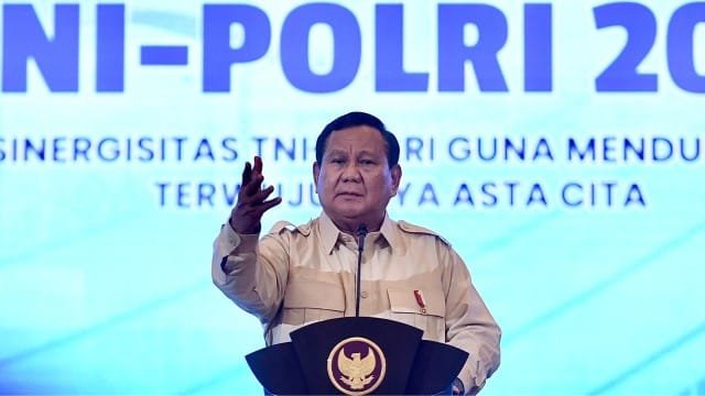 “Karena itu biasanya ciri khas negara yang gagal adalah tentara dan polisi yang gagal,” kata Prabowo di hadapan ratusan prajurit TNI-Polri dalam acara Rapim TNI-Polri di gedung The Tribrata, Jakarta, Kamis (30/1/2025).