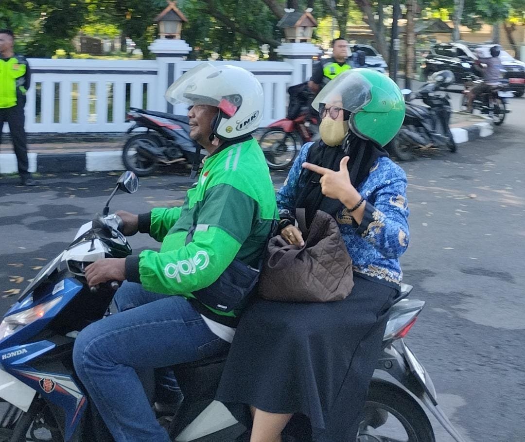 Pantauan Cluetoday, sejumlah ASN datang menaiki angkot maupun ojek online. Namun, masih terdapat pula yang menggunakan kendaraan pribadi.