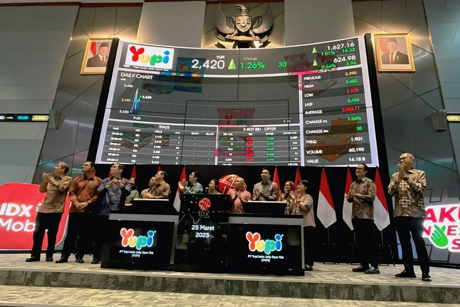 JAKARTA – PT Yupi Indo Jelly Gum Tbk secara resmi mencatatkan sahamnya di Bursa Efek Indonesia (BEI) pada hari ini, Selasa (25/3/2025). Perusahaan yang bergerak di industri permen ini melantai di bursa melalui skema IPO dengan kode saham YUPI.