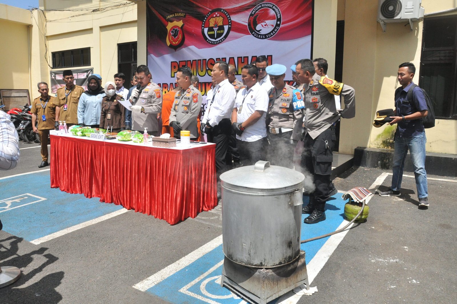Kapolres Subang, AKBP Ariek Indra Sentanu, memimpin langsung pemusnahan barang haram itu, Selasa (11/03/25) di Mako Polres Subang. Pemusnahan dilakukan dengan cara sabu dimasukkan kedalam tungku yang berisi air panas untuk dilarutkan. Setelahnya, air larutan sabu itu dikubur ke dalam tanah.