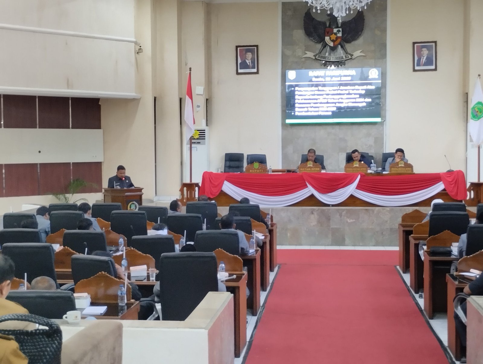 “Alhamdulillah, pak Bupati, karena paripurna kemarin hanya dua yang hadir eselon II, tapi kali ini paripurnanya full. Saya sangat mengapresiasi,” ujar Victor, disambut tepuk tangan.