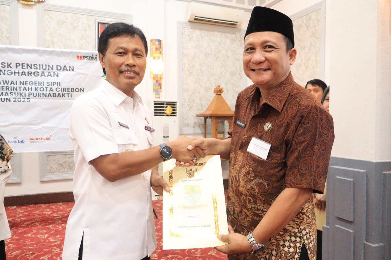 Cirebon – Pemerintah Kota Cirebon memberikan apresiasi kepada 29 Aparatur Sipil Negara (ASN) yang telah menuntaskan masa baktinya melalui penyerahan Surat Keputusan (SK) Pensiun dan Tanda Penghargaan, Rabu (22/10/2025). Wali Kota Cirebon, Effendi Edo memimpin langsung kegiatan tersebut.