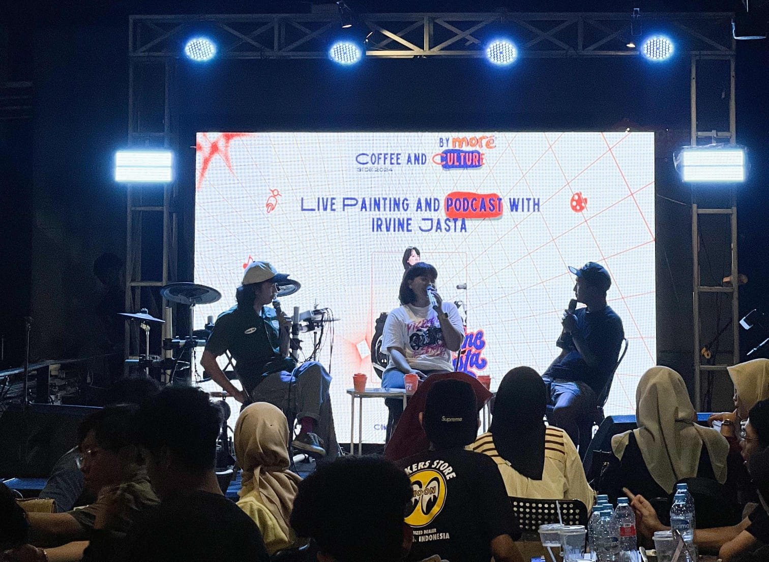 Kegiatan digelar sejak Sabtu (31/12/24) hingga malam pergantian tahun di More Coffe, Jl. Otista, Subang. Ilustrator dan Desainer asal Bandung, Irvine Jasta hadir langsung di acara tersebut. Irvine melakukan live painting. Tak hanya itu. Dia juga berbagi tips soal masa depan ekosistem industri kreatif.