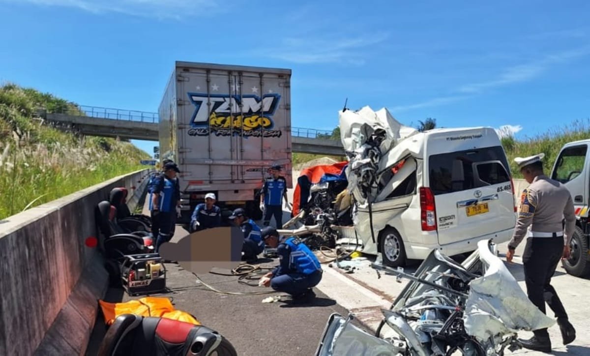 “Kendaraan menabrak bagian belakang truk Hino bernomor polisi B 9652 TEZ yang dikemudikan MW, 27, warga Lampung Tengah. Benturan keras mengakibatkan Toyota Hiace terjepit di bagian ban belakang kiri truk dan akhirnya berhenti di lajur satu,” ungkap AKP Awang Munggardijaya selaku Kepala Seksi Humas Polres Sumedang kepada Kompas.com pada Selasa (29/4/2025).