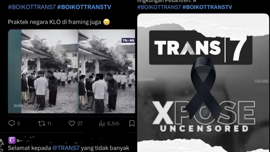 JAKARTA — Stasiun televisi Trans7 menuai kecaman usai program Xpose Uncensored yang terkesan melecehkan pondok pesantren dan kiai. Tayangan tersebut memicu kemarahan publik dan membuat tagar #BoikotTrans7 trending di media sosial.
