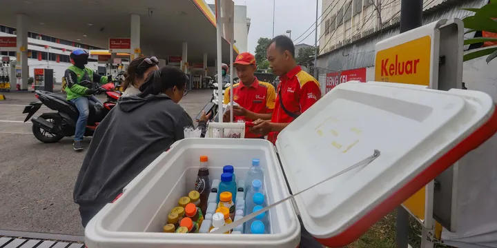 Dalam rekaman yang beredar, tampak dua petugas SPBU berseragam Shell menata meja sederhana dengan termos kopi, gelas plastik, hingga air mineral. Beberapa pengguna jalan bahkan terlihat singgah membeli dagangan mereka.