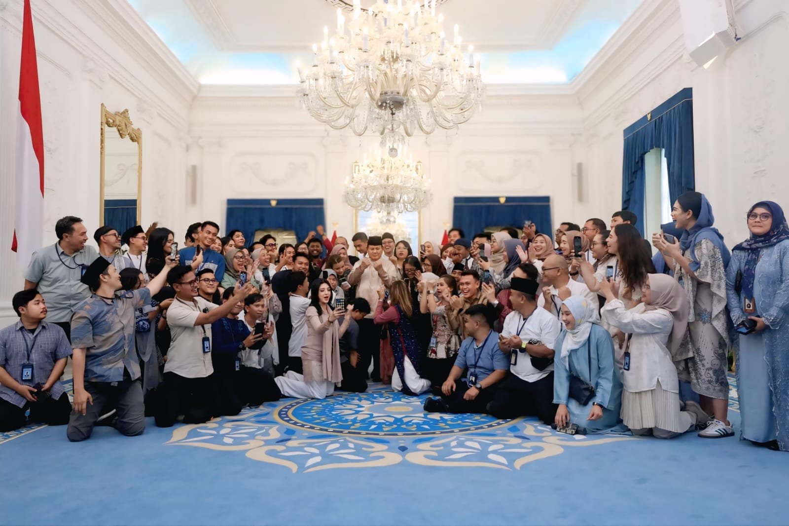 Lalu, setelah sesi foto bersama selesai, Akbar Evandio, seorang wartawan dari Bisnis Indonesia, tiba-tiba mengundang Presiden Prabowo Subianto untuk mencoba gerakan viral velocity. Karena rasa penasarannya, Prabowo Subianto pun langsung setuju dan meminta untuk diajari