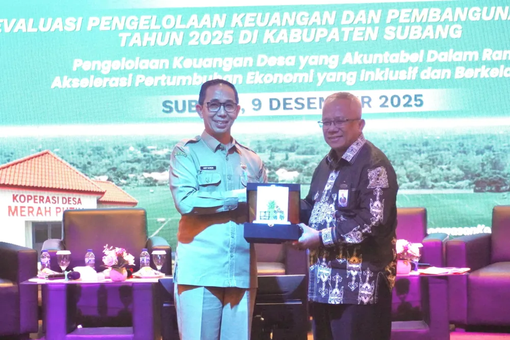SUBANG – Pemerintah Kabupaten Subang menegaskan komitmennya untuk memperkuat akuntabilitas pengelolaan Dana Desa, seiring dengan upaya daerah dalam mengakselerasi pertumbuhan ekonomi yang inklusif dan berkelanjutan. Penegasan ini disampaikan dalam Workshop Evaluasi Keuangan dan Pembangunan Desa Tahun 2025 yang diselenggarakan oleh BPKP Perwakilan Provinsi Jawa Barat di Sari Ater, Ciater, pada Selasa (9/12/2025).